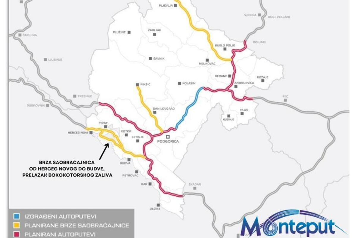 Monteput je raspisao javni poziv za izradu idejnih rješenja za dionicu brze saobraćajnice od Herceg Novog do Budve, prelazak preko Bokokotorskog zaliva.