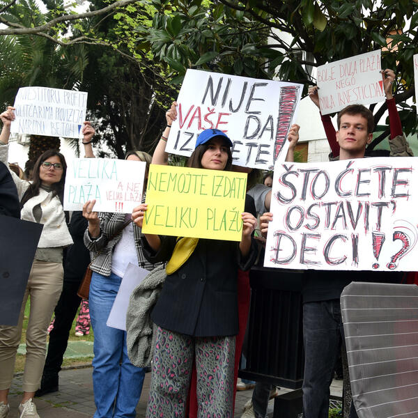 Ulcinjska aktivistkinja Zenepa Lika je kazala da su pred Skupštinu došli jer ih Vlada ignoriše mjesec dana, te da su tenderi za plaže objelodanili plan premijera Milojka Spajića i njegovih "kompanjona", jer su bili čudni i netransparentni.