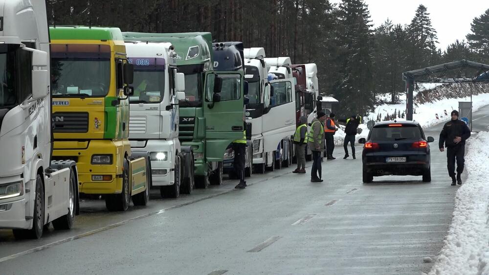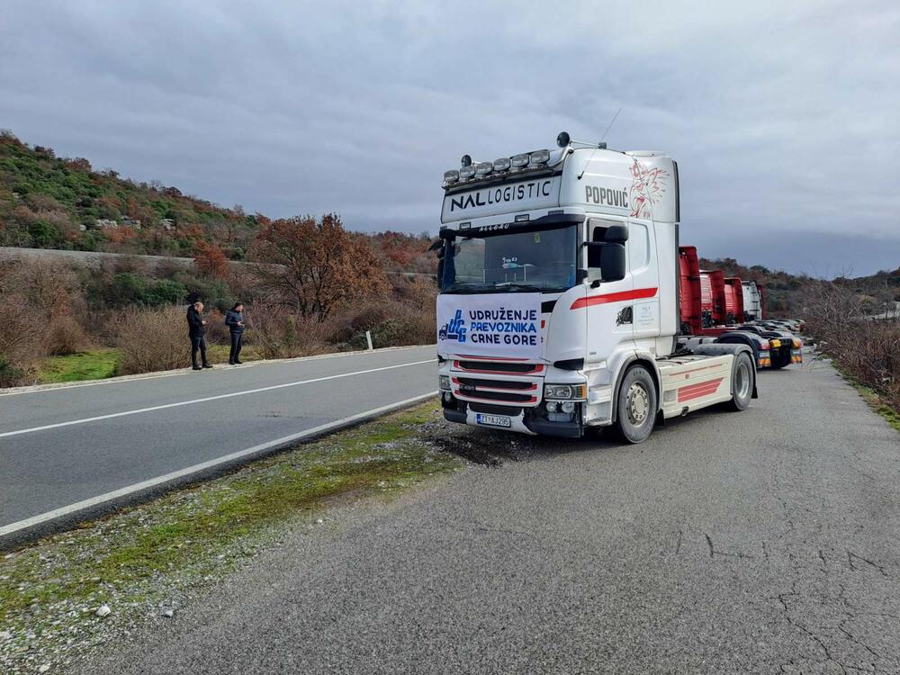 Udruženje prevoznika Crne Gore započelo je graničnu blokadu teretnog saobraćaja, pa su njihovi kamioni parkirani na proširenjima u blizini više graničnih prelaza.