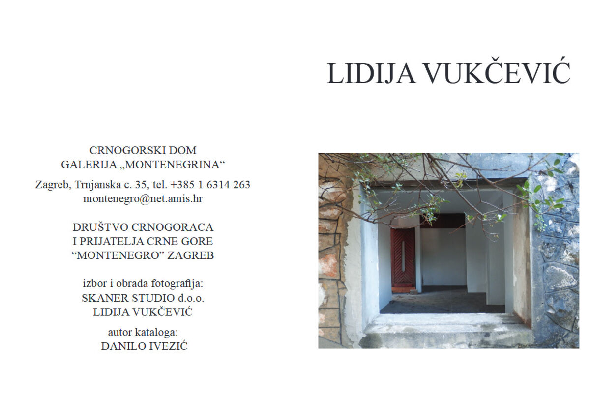 Izložba fotografija Lidije Vukčević, biće otvorena u galeriji “Montenegrina” u Crnogorskom domu u Zagrebu, u četvrtak u 19 časova. Ciklus od 40 fotografija “La fenêtre da la maison paternelle” (Prozor očinske kuće) snimljen je u samoborskoj i crnogorskoj sredini protekle godine.