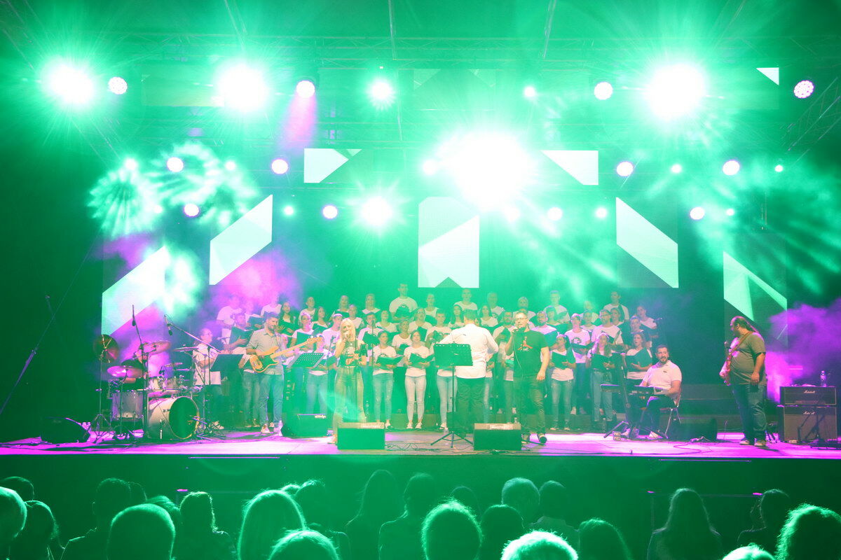 Pod dirigentskom palicom Mira Kruščića, dvosatni program obuhvatio je klasike ex-Yu roka i svjetskih rok velikana, aranžmanski prilagođene horskom pjevanju, od Zdravka Čolića i Riblje čorbe, do Queen, čiji je legendarni dublet "We will rock you/We are the champions" izveden na bis.