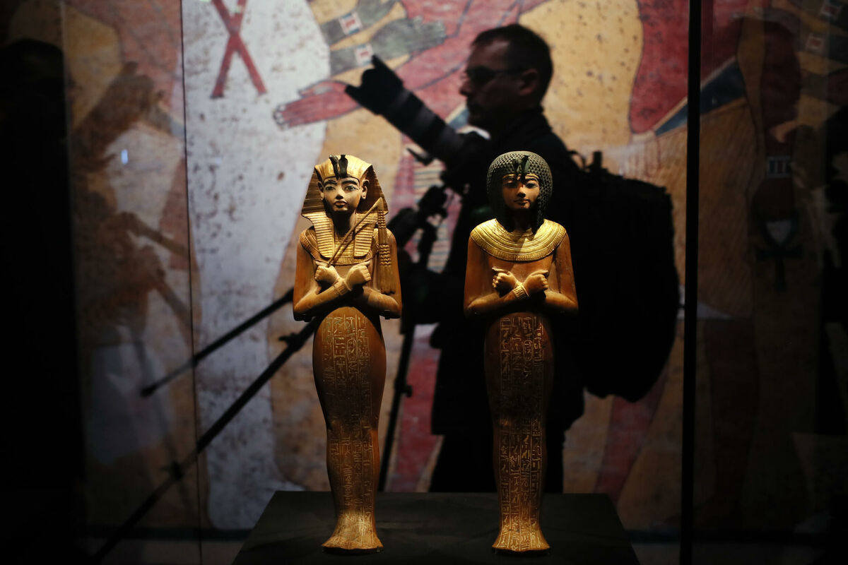 Zlatni nakit, skulpture, gravire, ritualni predmeti, na izložbi je predstavljeno 150 predmeta pronađenih u grobu mladog faraona 1922. godine, od kojih je 60 prvi put izašlo iz Egipta. Mada čuvena pogrebna maska nije poslata na put.