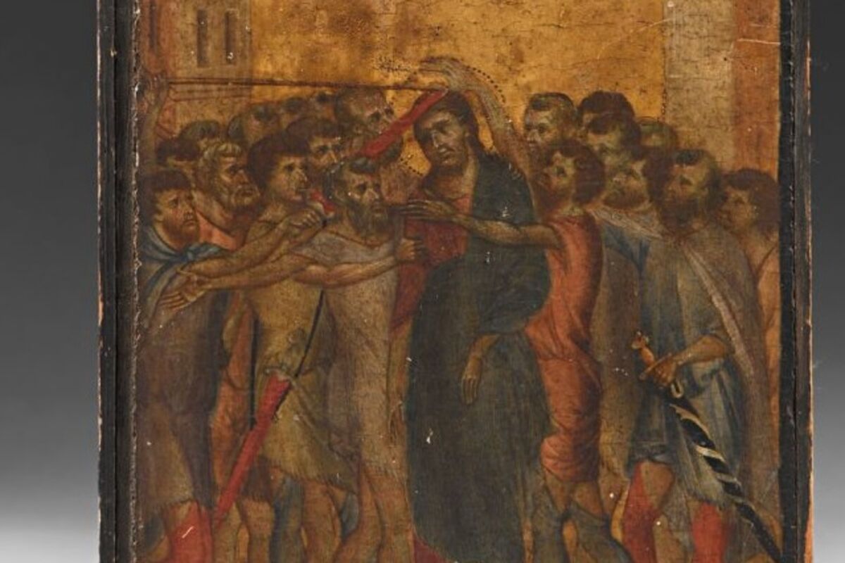 "Ismijavani Hrist", tema je ove slike malog formata (25,8 centimetara sa 20,3 centimetara), vjerovatno dio diptiha iz 1280. godine na kome je predstavljeno osam slika slične veličine koja predstavljaju Stradanje Hrista.
