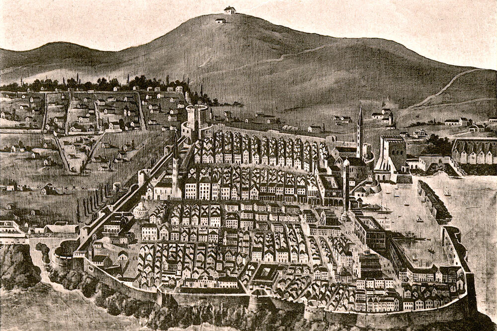 To ljeto, tih ljeta krajem 60-ih nisam znao kuda, ali sam znao da hoću nekud. Bio sam na putu i da urliknem. Tijelo je bilo moj instrument, moj amblem. Oteo mi se hijeroglif dribling i moj suparnik, moj stariji prijatelj, hazarder Fric Kontić, htio je da me pročita, da mi otme loptu. Moja lopta varalica činila se Fricu da je već njegova, omakla mu se stajna noga, htio je da me uhvati, da ublaži pad. Fricovi prsti na mom vratu na ramenu i otkinuo se lančić. Nestao u pjesku, u travi, u morskoj pjeni. Da, igrali smo na moru koje cvjeta, da, more je bilo naše veliko igralište tu ispod, ispred moje prve osnovne škole. Tjedan dana nosio sam zlatan lančić s dubrovačkim grbom, koji mi je tako lako i otmjeno poklonila Dubrovkinja. Tako bi mi darovala grad Dubrovnik, sve sa Sponzom... Grb je kupljen u juvelirskoj radnji na Prijeku, kod majsotra Luja Bakotića. Bila je Velika srijeda baš na dan kad je Dubrovnik zadesio veliki zemljotres daleke 1667. Vlastela okupljena ispred Dvora čekala je da knez završi jutarnju molitvu, pa da počne sjednica Velikog vijeća na kojoj će se pomilovati osuđenici. Crkve su bile pune svijeta, a po kućama su gorele velike vatre na kojima su se spremali uskršnje poslastice. Srdačno i sjajno dočekan, u gradu je boravio holandski rezident u Carigradu Joris Kruk, koji se sa svojom mnogobrojnom raskošnom pratnjom zaustavio u Dubrovniku da u tom posljednjem slobodnom hrišćanskom gradu provede praznike. Međutim, nešto prije devet časova začula se odjednom potmula tutnjava, a odmah zatim, gotovo istovremeno, jak kratak udarac zanjihao je grad i oborio ga uz strahovit tresak. Jedan franjevac koji je tada služio misu tvrdi da je taj udarac trajao samo dok je on izgovorio ove riječi: Passio Domini Nostri Jesu Christi secundum... Dok je zemljotres tresao Dubrovnik ljuljalo se nad gradom krševio brdo Srđ, od koga su se otkidale velike stjene i survavale na grad... Grad je odjednom potamnio a sunčeva svjetlost, probijajući se kroz gustu koprenu, postala je krvava i utuljena. Zemlja je pucala i velike pukotine u predgrađima gutale su čitave kolibe, bunari su odjednom presušili, vrela su počela da izbacuju žutu, gustu masu da bi se namah sasvim ugasla. Preživjeli stradalnici ugledali su kako se jedna od gradskih tvrđava dvaput rasklapa i sklapa. More se nekoliko puta povlačilo od obale i odnosilo sobom brodove ukotvljene u luci, tako da su ih talasi, vraćajući se sa pučine, razbijali o obalu, zidine i stjene: Od svuda se vika čuje,/od svuda se pomoć pita,/svak bugari, svak boluje,/svak u strahu svom mahnita.