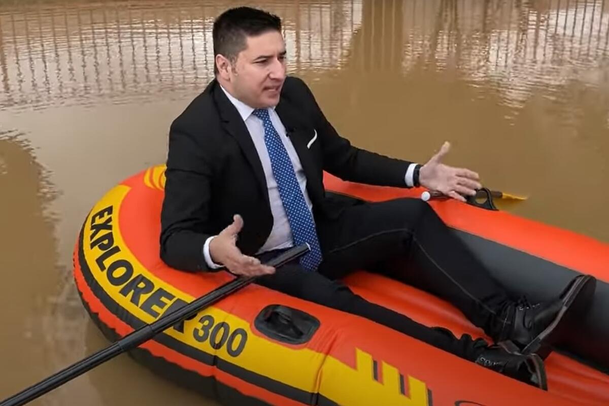 U očiglednoj namjeri da Ivanuški zorno ukaže na notorni problem sa kojim se suočavaju građani Podgorice - a koji bi se odnosio na neoticanje, odnosno zadržavanje atmosferske vode nakon svake obilnije kiše na nebrojenim lokacijama u našem divnom gradu - pogotovo na frekventnim komunikacionim linijama, te uz objekte - Dajko je nekoliko dana prije nego što će se popeti na bager i uputiti posljednji ultimatum Ivanuški - sjeo u plastično plovilo - Nitex Explorer 300 (36.50 eura - u kompletu sa dva vesla i pumpom za naduvavanje) - i proveslao dubokom lokvom - odnosno baruštinom - koja se nalazi tačno isred sjeveroistočne kapije Vaspitne jedinice “Zvončić” u Maslinama (JPU “Đina Vrbica”) - uz Ulicu Franca Rozmana. Dajko je tada prvi put pozvao Ivanušku da se konkretno pozabavi tim problemom - pomenuvši i bager u kontekstu eventualnog rješenja - a kako Ivanuška nije reagovao, jer vjerovatno ne dolikuje gradonačelniku Glavnog grada da se bavi konkretnim problemima - Dajko je morao da se popne na bager i odapne ultimatum.