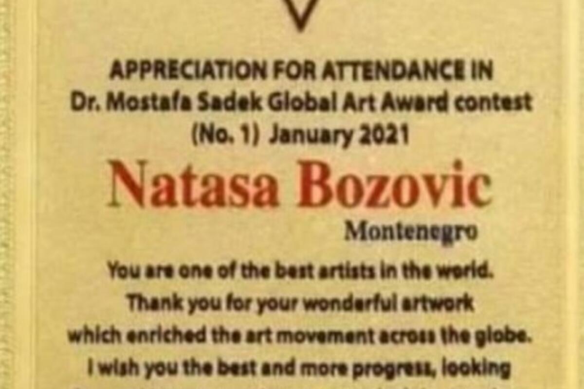 Samouka slikarka Nataša Božović iz Bijelog Polja osvojila je prošlog mjeseca drugu nagradu u svijetu, “Zlatni trofej” u Egiptu.