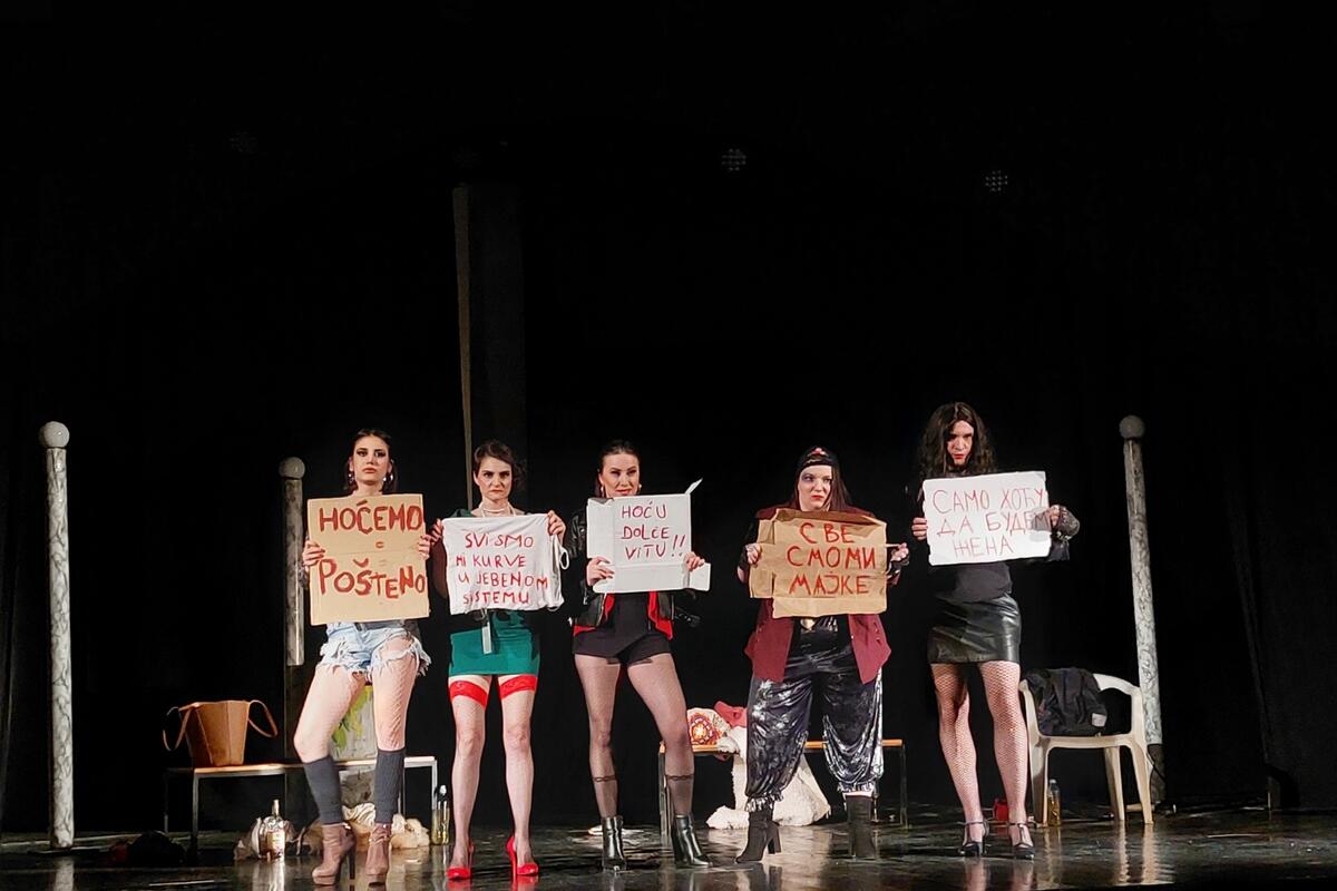 ”Upravo. Ta tema je bila i inspiracija za nastanak ovog komada te davne 2007. godine, a na osnovu novinske vijesti koju sam pronašla u nekom od crnogorskih štampanih medija gdje je najavljen štrajk prostitutki u Italiji. One su tada tražile neka svoja prava i potpunu legalizaciju svog posla, što je meni bila inicijalna kapisla za ideju za ovaj dramski tekst. Svakako, u toj grupi obespravljenih i marginalizovanih građana mogu da se pronađu i sve druge grupe koje dijele slične probleme, koje sistem ne prepoznaje i za koje nema socijalnu politiku koja bi na adekvatan način riješila njihova životna pitanja”, ističe ona.