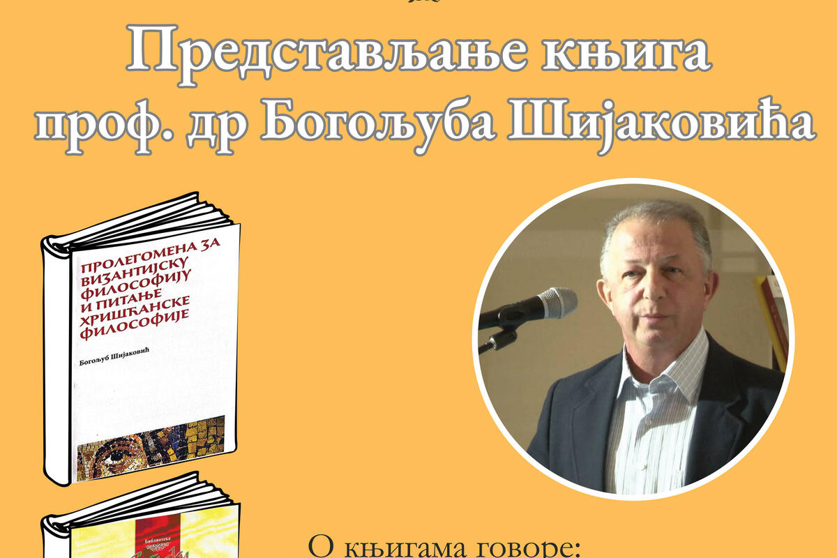 Večeras će u sali „Zahumlja“, sa početkom u 17 časova, biti predstavljene tri knjige prof. dr Bogoljuba Šijakovića: „Prolegomena za vizantijsku filosofiju i pitanje hrišćanske filosofije: orijentisanje, pristup, određenje, uticaj“ (2022), „Norma i nada“ (2023) i „Mišljenje u pletivu istorije: ogledi iz srpske istorije“ (2023).