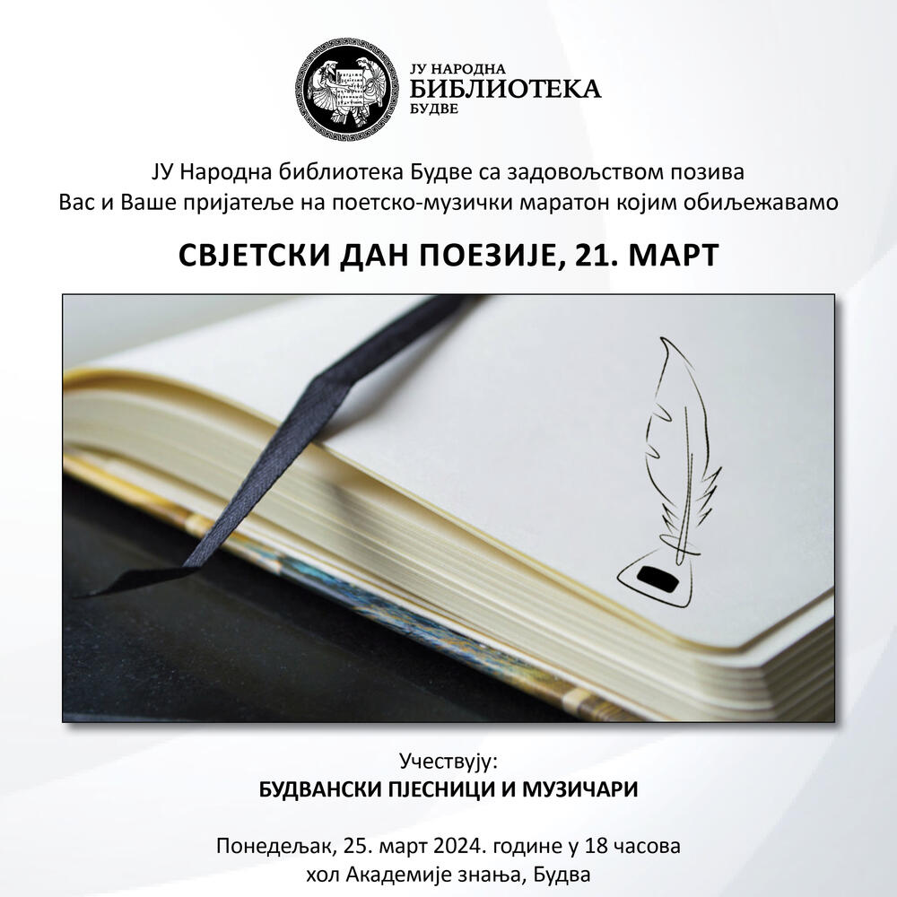 “Ovom prilikom, kao i u mnogim drugim sličnim, ističemo neprolaznost i aktuelnost poezije i poetske misli”, poručuju iz Narodne biblioteke Budve.