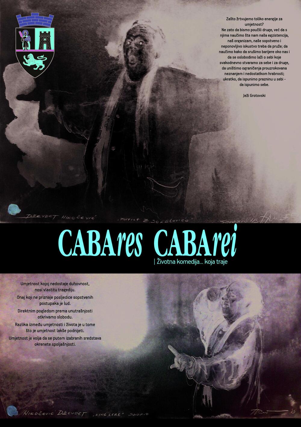 “Zijah A. Sokolović u komediji “Kabare, Kabarei “, govori i igra sve moguće, majstorskom mimikom i potpunim vladanjem glasom vodi gledaoce od neukrotivog smijeha do ledene užasnosti, poigrava se osjećajima i mišljenjem publike do ivice izdržljivosti, dok igrajući prepliće dvije velike, za svakog značajne teme, ljubav i smrt”, navodi se u opisu.