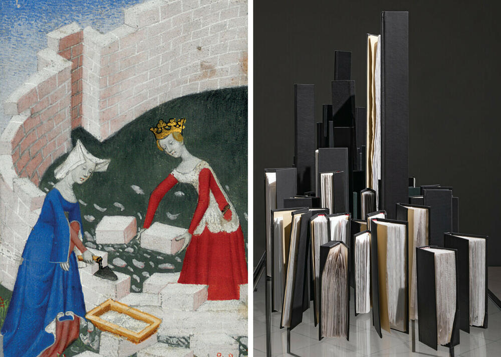 "U središtu ovog vizuelno-tekstualnog djela nalaze se dva izvanredna umjetnička djela, "Znanje društva ograničene odgovornosti" Irene Lagator Pejović iz 2009. godine i "Knjiga o gradu žena" (Livre de la cité des dames) Kristine Pizanske koja datira okvirno iz 1405. godine, a oba djela se fokusiraju na žensko razumijevanje izgradnje gradova", piše u opisu.