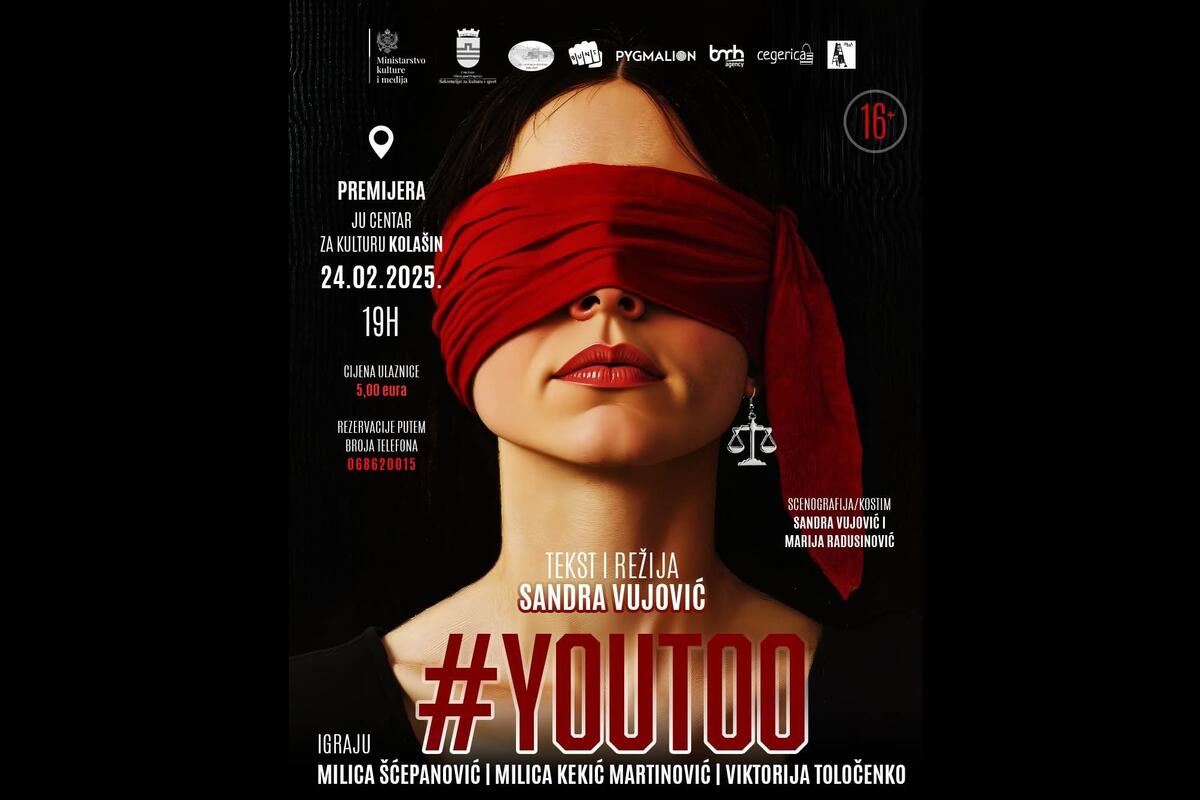 Premijera predstave #YouToo, prema tekstu i u režiji crnogorske dramske književnice Sandre Vujović, u koprodukciji Bunt Scene i Centra za kulturu Kolašin, biće izvedena pred publikom u tom gradu u ponedjeljak, 24. februara.