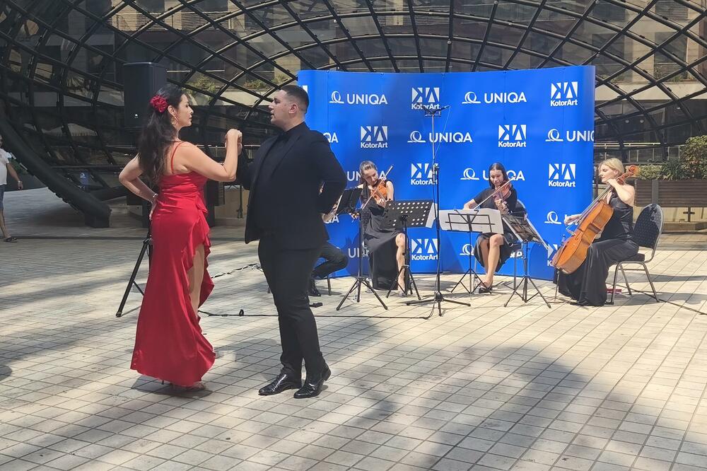 U nastavku jučerašnjeg događaja nastupio je gudački kvartet u sastavu mladih crnogorskih umjetnika koji će, kao dio Festivalskog orkestra, otvoriti KotorArt. Oni su izveli odabrana djela, među kojima je i Štrausovo najpoznatije “Na lijepom plavom Dunavu”, a plesni par ih je pratio valcerom.