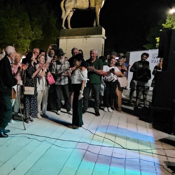 "Muzičari su se vratili na binu, ali ne i Beti... Ona je ostala je tik ispred publike i počela 'O mladosti' Arsena Dedića. Svi iz publike su prišli i pjevali zajedno sa njom. Nevjerovatna energija je bila na nikšićkom trgu", naglašava Rakočević.