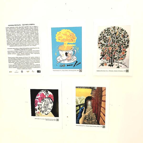 “Projekat je sakupio odabrane radove učesnika umjetničkog maratona ‘Generacije rata’, koji prikazuje rat iz ugla umjetnosti i uključuje umjetnike iz cijele Ukrajine, različitih uzrasta (od djece do starijih osoba) koji trenutno proživljavaju rat. Umjetnički maraton je svojevrsna art terapija za Ukrajince, prikuplja likovna svjedočanstva o ratu i širi ih širom svijeta, pozivajući na podršku Ukrajini u njenoj teškoj borbi protiv osvajača”, navodi se u saopštenju organizatora - Udruženja za razvoj međunarodnih odnosa ADRUM.