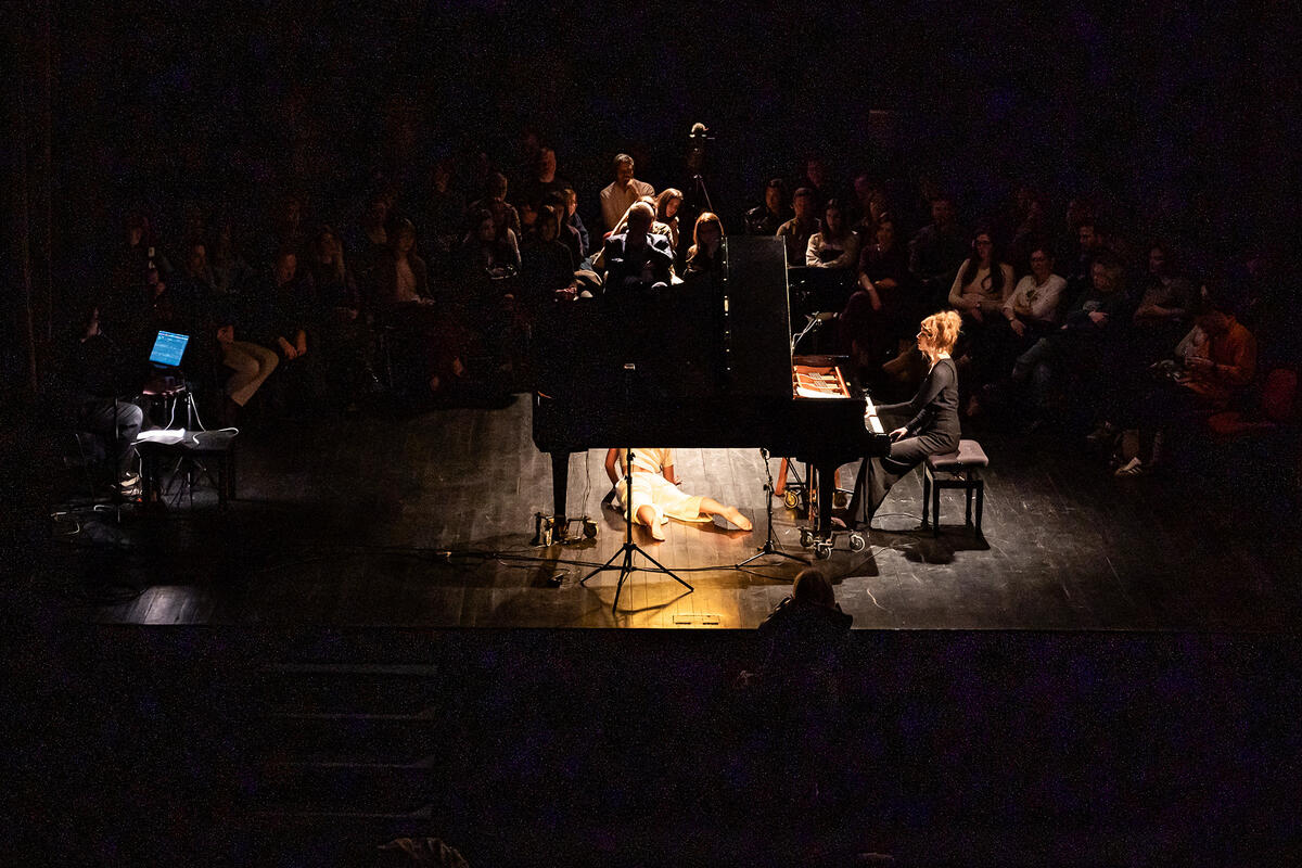 Porudžbina festivala, muzičko-scenski performans pijanistkinje i kompozitorke Marije Mitrović pod nazivom Ne ja/Not I, premijerno je izveden prve festivalske večeri. Ovaj performans, inspirisan čuvenim monologom Semjuela Beketa, uspostavlja specifičnu estetičku ravan kroz saradnju “na distanci” između Mitrovićeve i scenskog-plesnog izraza glumice Jovane Brnović. Njihova saradnja otvorila je intertekstualni prostor istraživanja identiteta i granica subjektivnosti. Postdramska orijentacija izražava se kroz muzičku fragmentarnost, repetitivnost i minimalistički pristup, dok je scenski pokret sveden na elementarne radnje, lišen eksplicitne naracije i psihološke motivacije. Kroz strategije depersonalizacije i fragmentacije, izvođačice na sceni ne nude lik ili narativ sa kojim se publika može identifikovati, već generišu čisto senzorno iskustvo, kome doprinose glas iz zvučnika (Andriesh Gandrabur), svetlo, scenografija (Matija Mitrović) i video efekti (Čedo Čizmović). U takvom ambijentu, publika nije pozvana na empatiju sa subjektom, već na svedočenje njegovom rastakanju.
