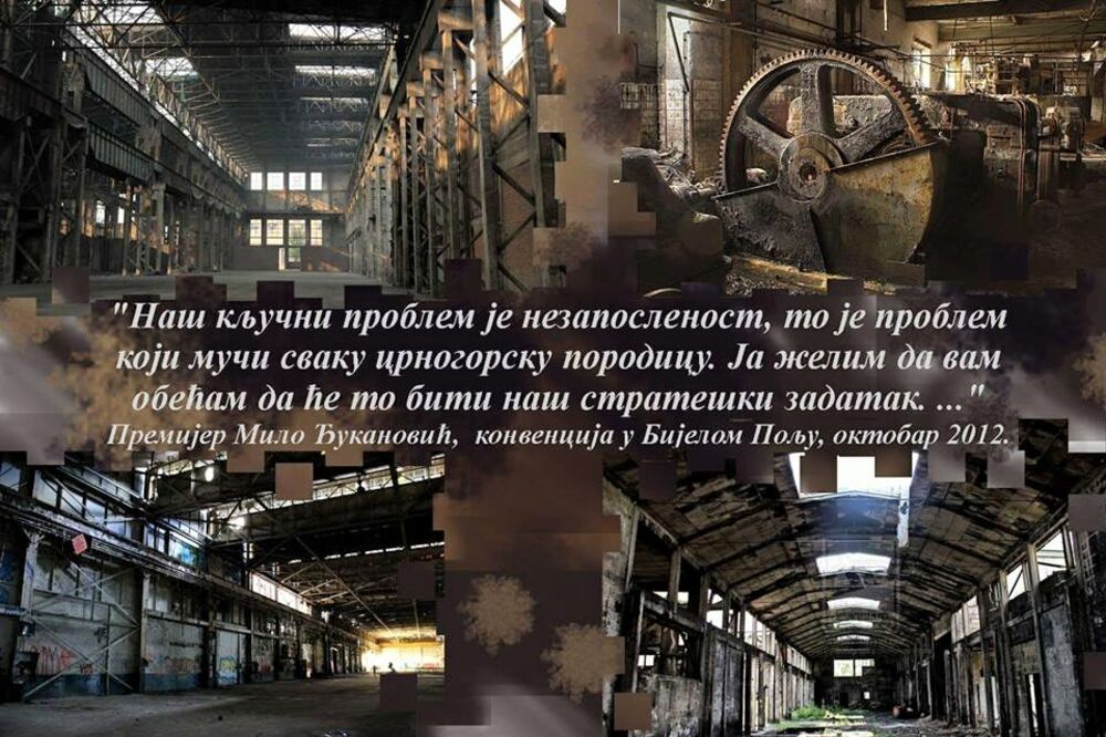 Na razglednici je ispisan citat Mila Đukanovića sa konvencije u Bijelom Polju, iz oktobra 2012.godine – “Naš ključni problem je nezaposlenost, to je problem koji muči svaku crnogorsku porodicu. Ja želim da vam obećam da će to biti naš strateški zadatak”.