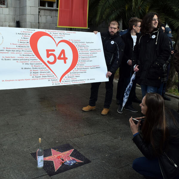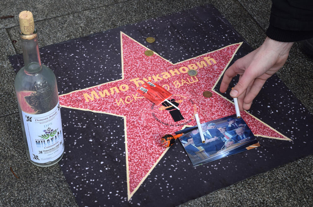Građanski pokret otpora Crna Gora organizovao je povodom rođendana Mila Đukanovića performans u okviru kojeg su ispred Skupštine premijeru postavili zvijezdu slavnih.
