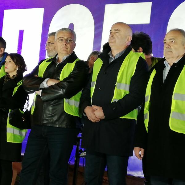 Čelnici DF-a se nalaze ispred danas postavljene bine, a pristalice još uvijek dolaze. Pred Skupštinom se okupilo oko hiljadu demonstranata.