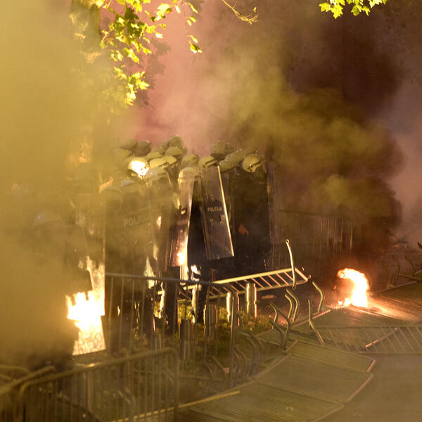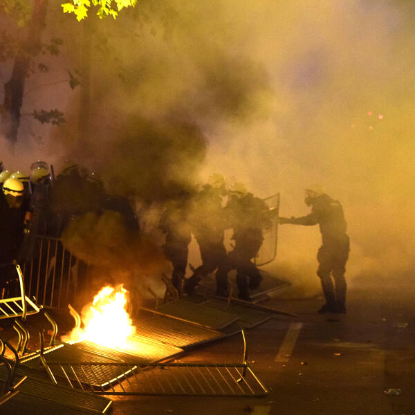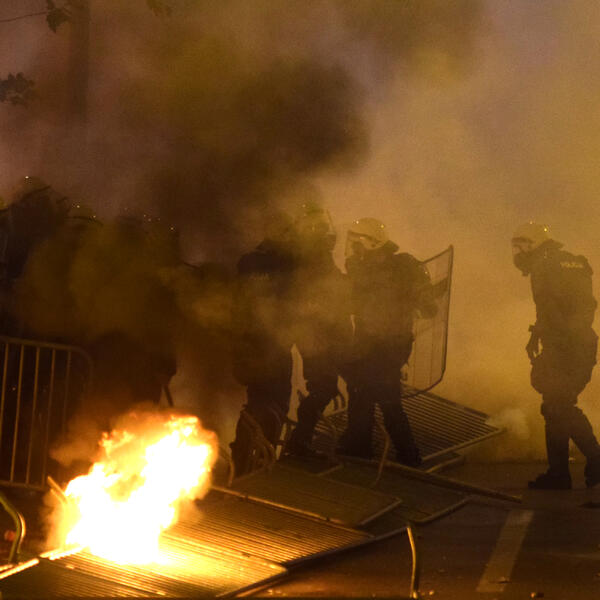 Hiljade ljudi okupilo se juče na protestu u organizaciji Demokratskog fronta koji je počeo u 19 sati na Trgu republike u centru Podgorice, a završio se haosom nakon što je policija rastjerala demonstrante.