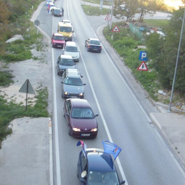 "Neprekidna kolona automobila koja počinje u Nikšiću, a završava se bukvalno u Danilovgradu! Nevjerovatno... Svi zajedno u Podgoricu", stoji u opisu fotografije