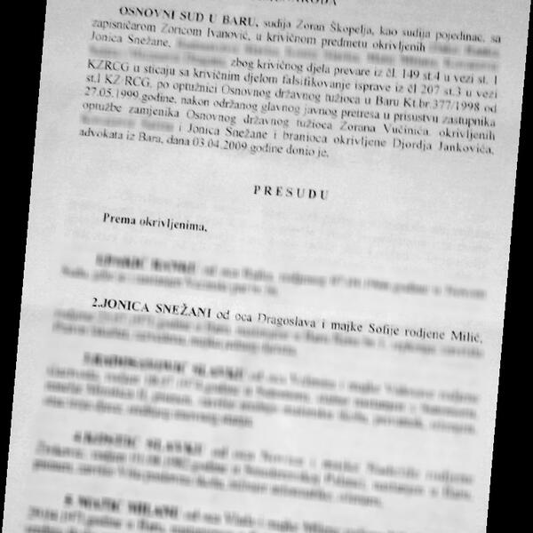 Mjesec dana nakon što je 2009. izabrana za poslanicu SNP-a, Osnovni sud u Baru odbio je zbog zastare optužbu za falsifikovanje isprava i prevaru protiv Snežane Jonice u postupku koji je trajao skoro 10 godina, proizilazi iz pravosnažne presude koja je juče stigla na mejlove pojednih opozicionih zvaničnika.