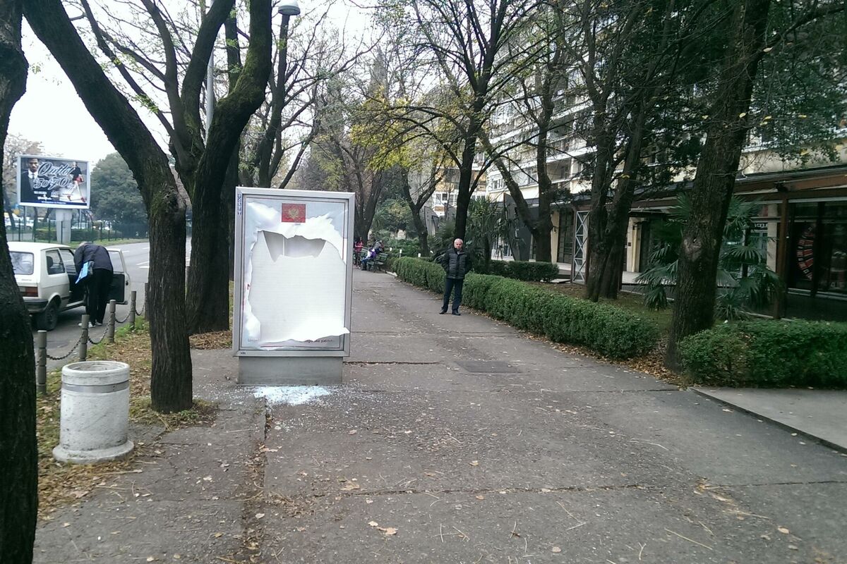 Reklamni pano koji se prethodnih dana nalazio na Bulevaru Svetog Petra (kod restorana "Maša") sa zvaničnim logom NATO-a od jutros je polomljen. Reklama koja se nalazila na siti lajtu je pocijepana.