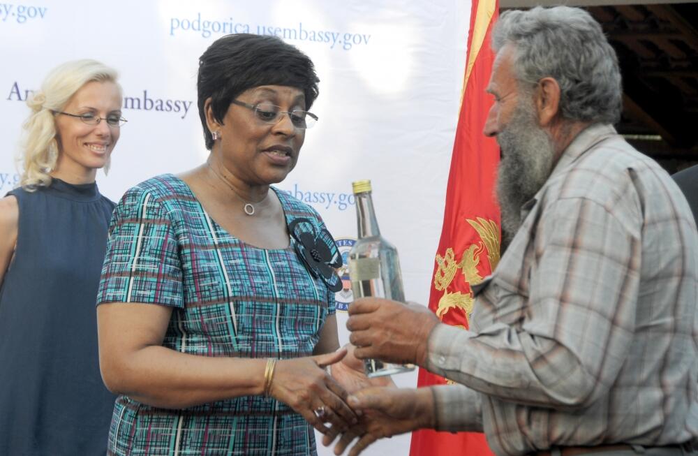 “Bila mi je čast da dodijelim Priznanje ambasadora za građanski aktivizam Fani Deliji iz Centra za romske inicijative za hrabrost u radu na sprječavanju ranih i nasilnih brakova”, kazala je Kej Braun.