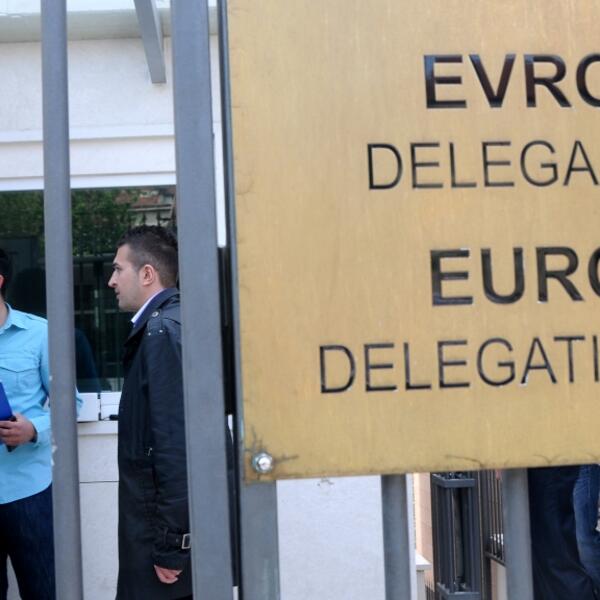 Grupa mladih iz Demokratskog fronta (DF) protestovala je ispred zgrade Delegacije Evropske unije (EU) u Podgorici nezadovoljna čestitkom koju je predsjednik Evropske komisije (EK) Žoze Manuel Baroso uputio Filipu Vujanoviću.