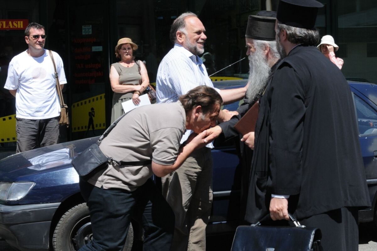 To očigledno nije slučaj sa odbornikom Narodne stranke u Podgorici Slavišom Guberinićem koji je danas ispred Osnovnog suda u Podgorici pohrlio da cjeliva ruku mitropolitu SPC Amfilohiju i tako pokaže javno svoj duhovni profil - poštovaoca crkve i Mitropolije crnogorsko-primorske.