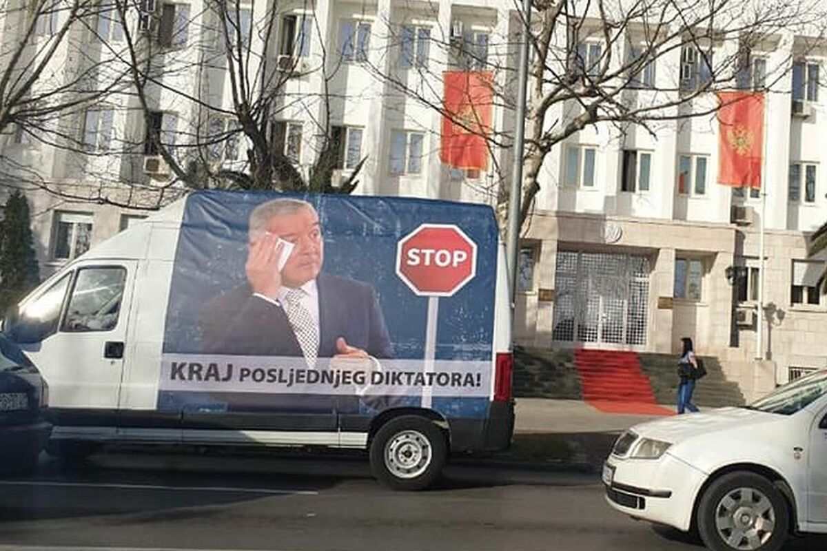 U centru Podgorice danas se pojavilo vozilo sa fotografijom predsjednika Crne Gore, Mila Đukanovića i natpisom "kraj posljednjeg diktatora".