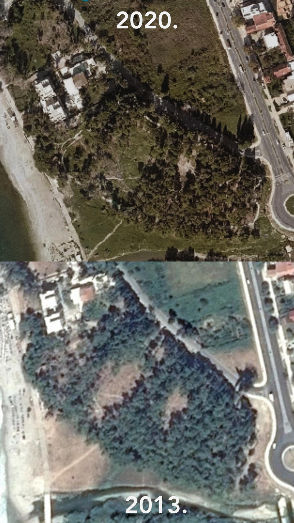 "Prirodni rekreativni park Šumica, stacioniran na samoj obali godinama je prepušten sili prirode ili bolje rečeno neprimjerenom odnosu Opštine Bar zbog čega je u 2020. godini ovaj park potpuno „prepolovljen“ kada je u pitanju broj stabala. Ni malo dalje prema Šušanjskoj plaži, kojom „gazduje“ Morsko dobro situacija nije ni malo bolja odnosno još je gora, pa drvoredi koji su nekada bili simboli ove plaže i zbog kojih se ljetovalo u Baru gotovo da više i ne postoje. Dio „preživljelih“ stabala usljed erozije i udara vjetra uskoro će potpuno dodirnuti plavo barsko more, odnosno doživjeti potpuno odvajanje od tla a samim tim i potpuno nestati", navodi Leković.