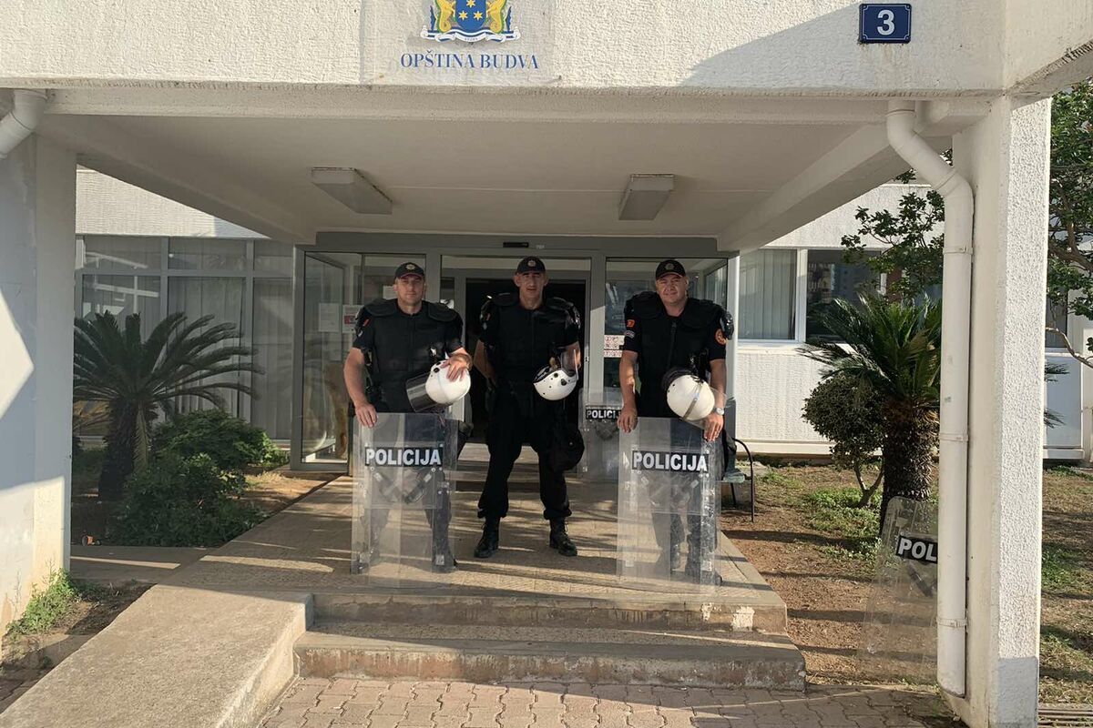 Gradonačelnik Marko Carević i predsjednik Skupštine opštine Krsto Radović stigli su oko 7.45 sati ispred zgrade Opštine. Njih i lidera budvanskih Demokrata Mijomira Pejovića zaustavio je policijski kordon.