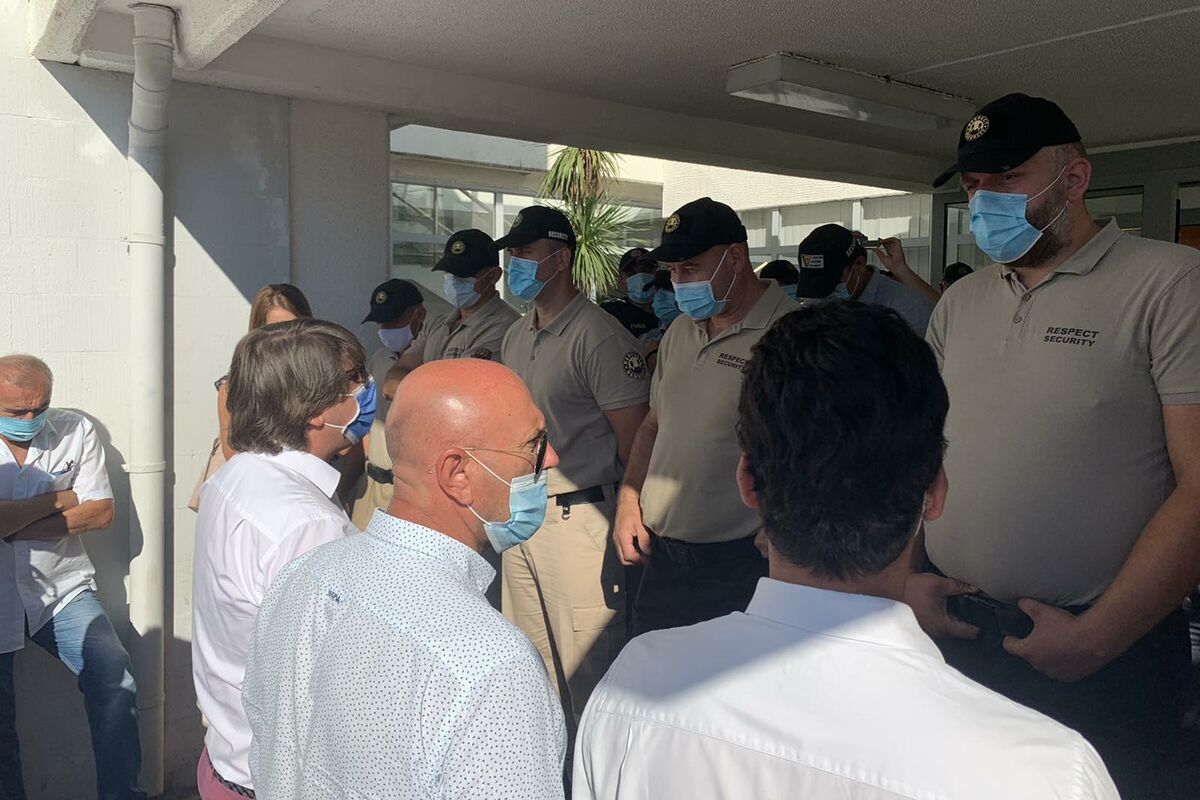 U zgradi Opštine bilo je desetak pripadnika privatnog obezbjeđenja, staklena vrata koja vode na sprat, gdje su kancelarije funkcionera bila su zatvorena, a jedini prolaz bio je omogućen između pulta na ulazu u Građanski biro.
