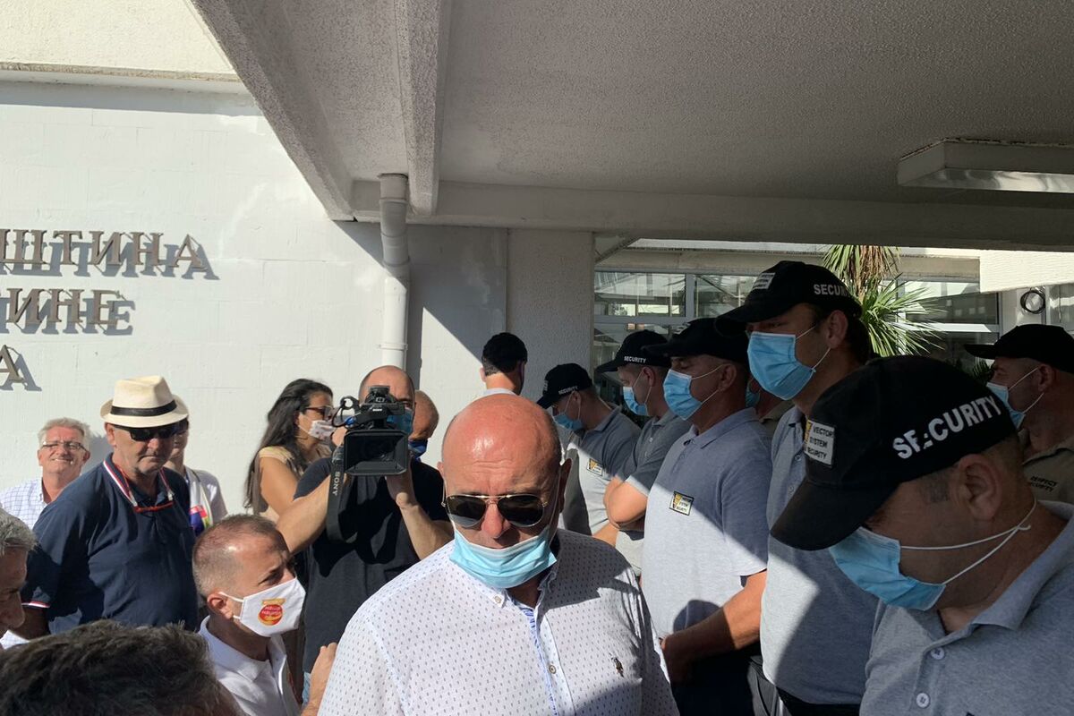 Kordon privatnog obezbjeđenja i jutros je u Budvi spriječio čelnike Demokratskog fronta i Demokrata Marka Carevića i Mijomira Pejovića da sa odbornicima te dvije partije uđu u skupštinsku službu. Carević je ponovo insistirao da mu se dostavi papir kojim se ne dizvoljava ulazak odbornika i funkcionera na radna mjesta.