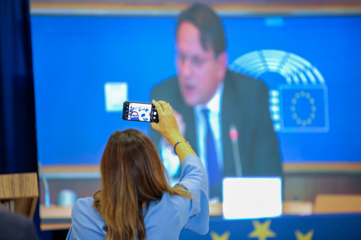 Varhelji govori na konferenciji za medije u Briselu, koju je uživo prenosio EU info centar, Foto: EU info centar