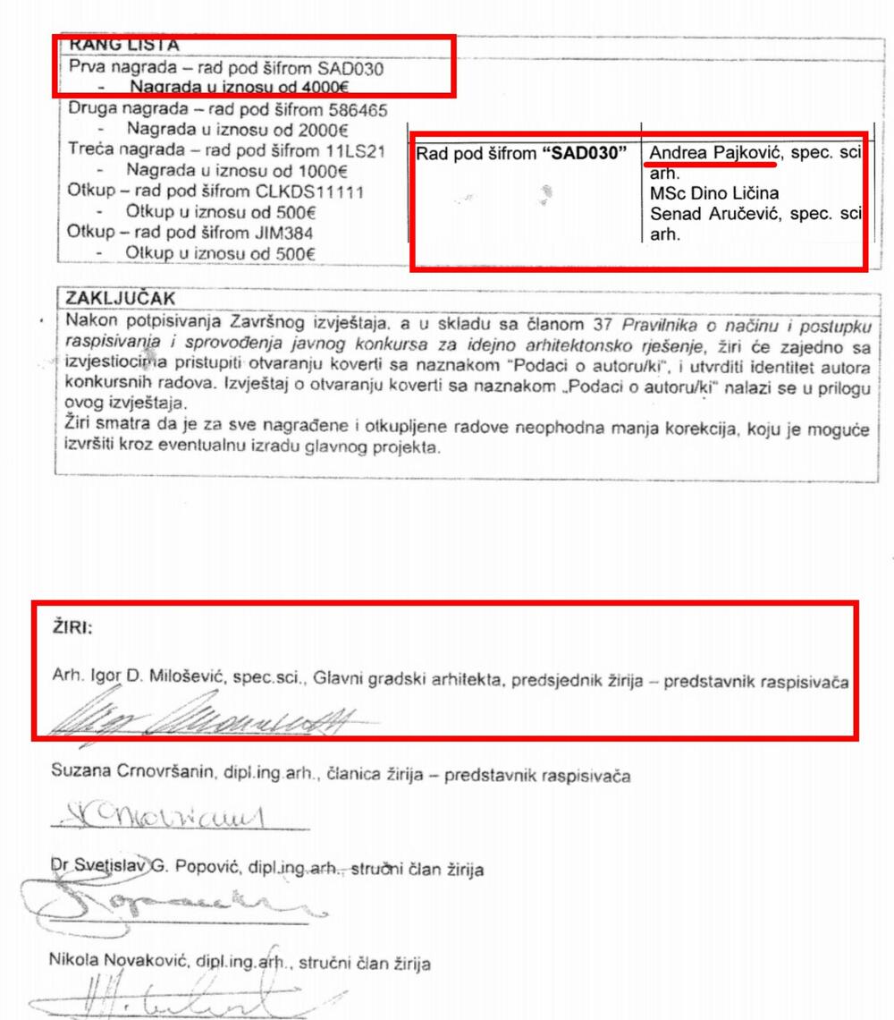 Dodaju da autorima pobjedničkog rada na čiji žiro-račun će leći čak 4.000 eura su arhitekte Andrea Pajković, Dino Ličina i Senad Aručević.