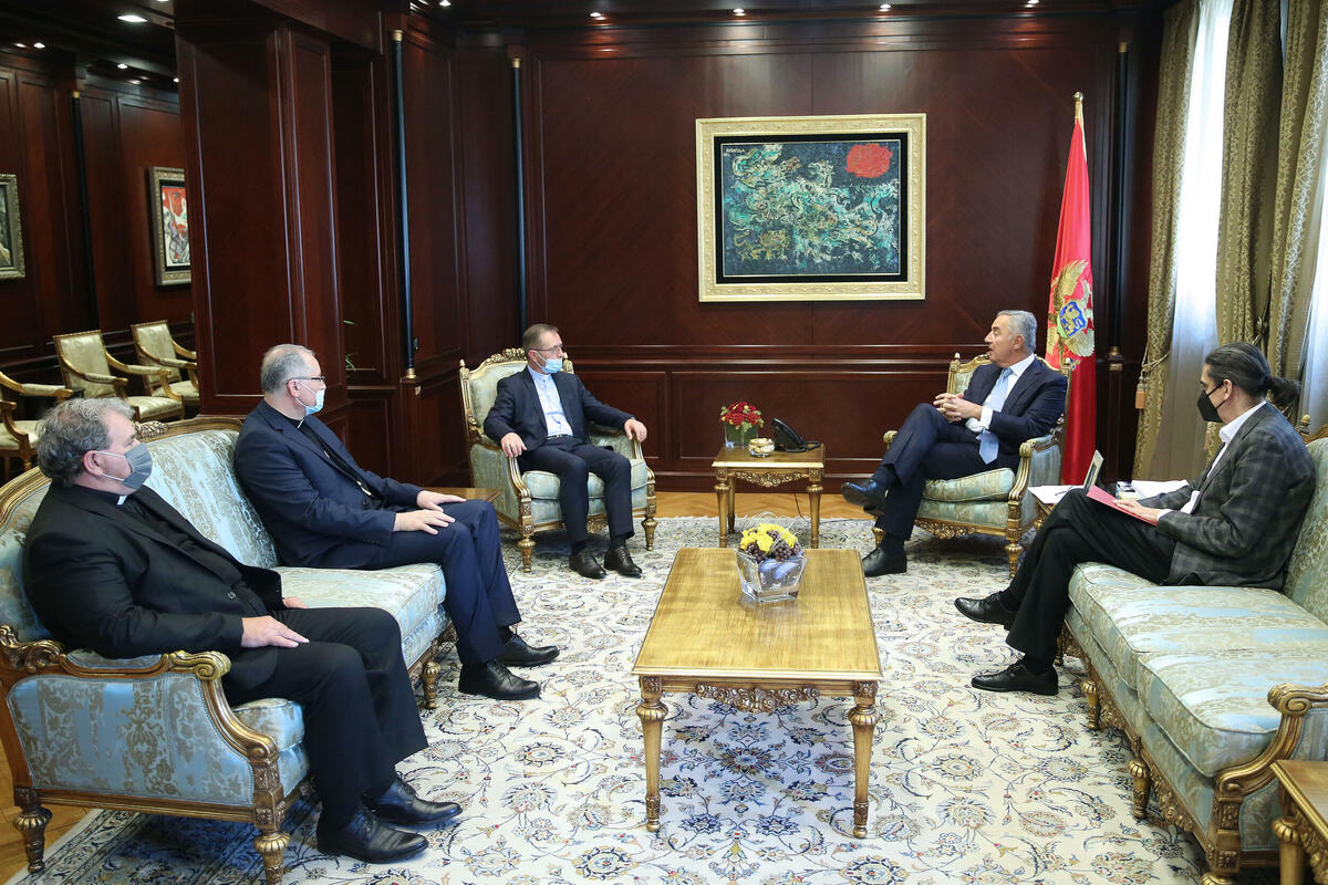 Đukanović je, kako je saopšteno iz njegovog Kabineta, izrazio zadovoljstvo prilikom da ugosti predstavnike katoličke crkve u Crnoj Gori i sa njima razgovara o pitanjima buduće saradnje države Crne Gore i katoličke crkve.