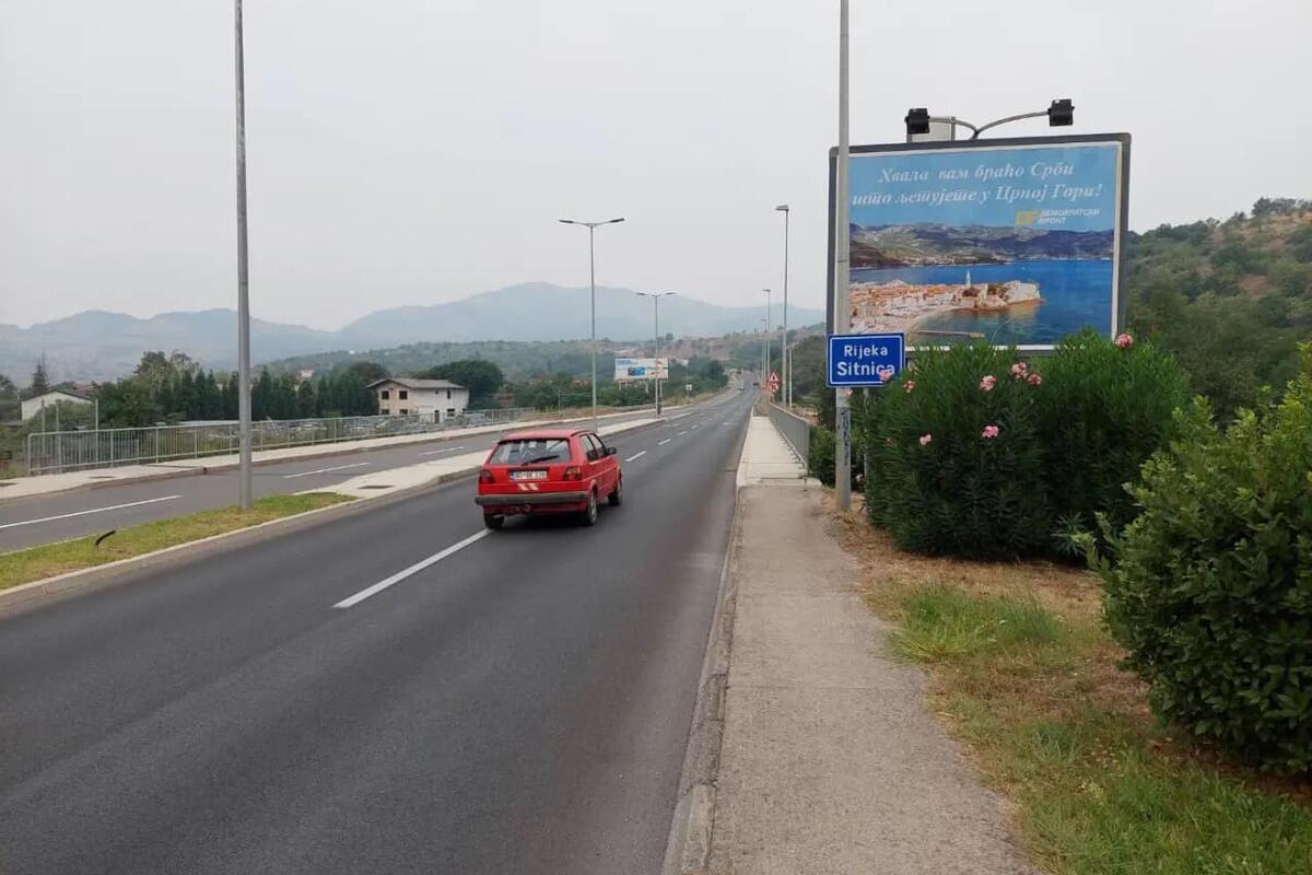 Demokratski front (DF) objavio je fotografije bilborda kojima se zahvaljuje "sunarodnicima iz Srbije i Republike Srpske (RS)" jer je "turistička sezona spašena".