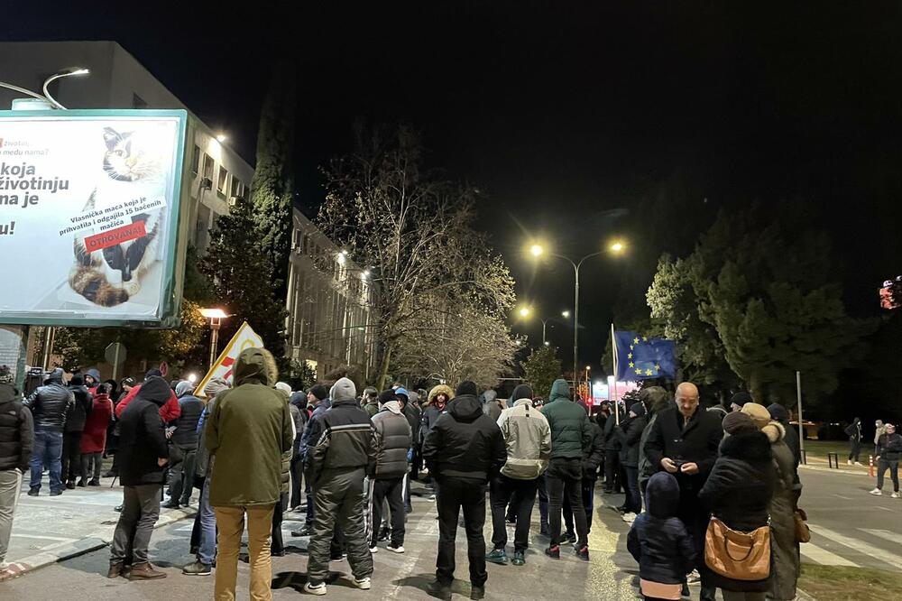Građani su se i večeras okupili u Podgorici na protestu protiv najave "rušenja" aktuelne Vlade i mogućeg formiranja manjinske Vlade.