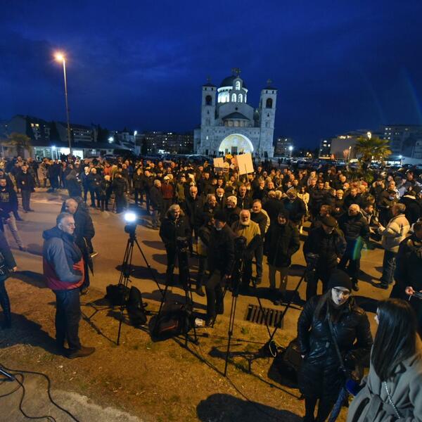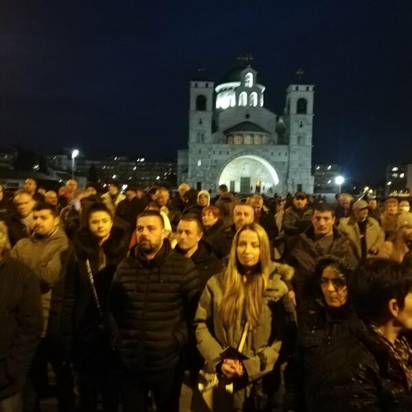 Nakon šetnje dijelom grada preko Morače, pristalice Demokrata ponovo su došle prekoputa Hrama, gdje je okončan večerašnji skup.
