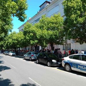 Nekoliko stotina službenika Uprave policije okupilo se ispred zgrade Vlade - protest su organizovali zbog umanjenja plata, tačnije traže da im se vrati ono što im je oduzeto od posljednje dvije plate.