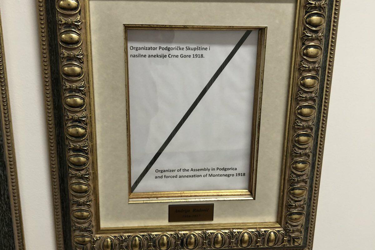 Na zidu na kome se nalaze fotografije svih ministara vanjskih poslova u istoriji Crne Gore, sada umjesto fotografije Radovića koja je tu bila posljednje dvije decenije stoji samo okvir u kom piše "organizator Podgoričke Skupštine i nasilne aneksije Crne Gore 1918.