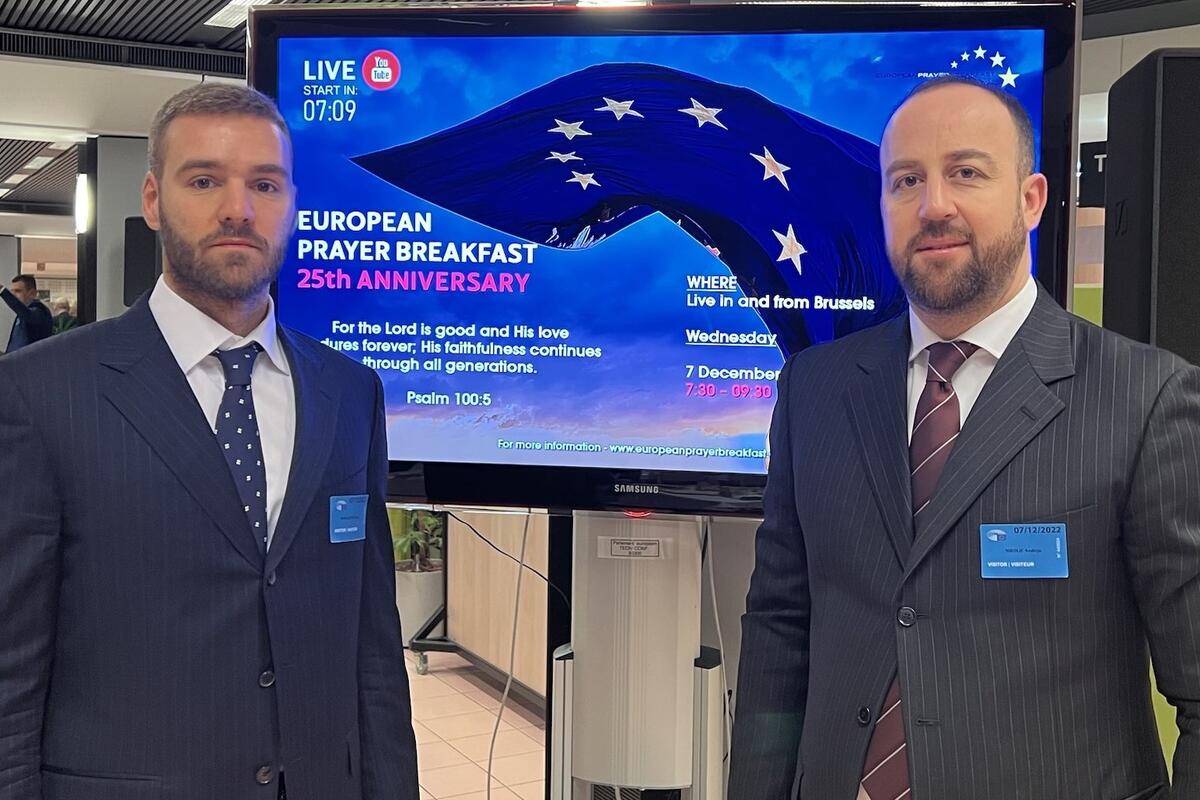 Poslanici i članovi Predsjedništva Demokratske partije socijalista (DPS) Andrija Nikolić i Nikola Rakočević učestvuju na 25. Molitvenom doručku za Evropu, koji se održava u Briselu.