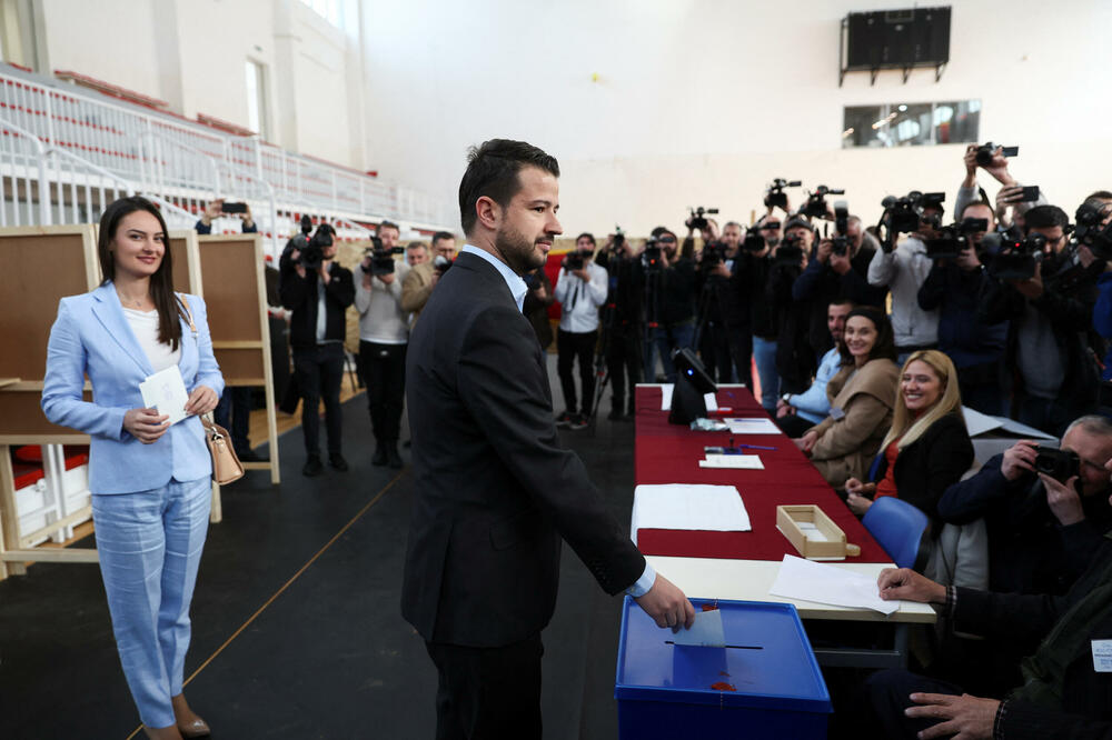 Predsjednički kandidat Pokreta Evropa sad Jakov Milatović došao je na svoje biračko mjesto u Podgorici da glasa u pratnji supruge Milene, ali bez lične karte.