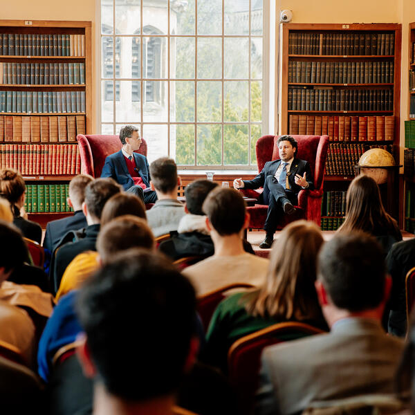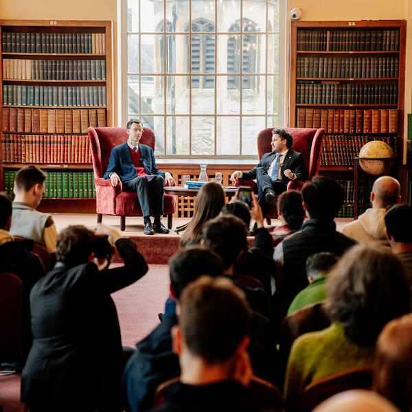 Abazović je u razgovoru sa profesorom istorije evropskih međunarodnih odnosa Brendanom Simsom, studentima i zainteresovanom javnošću pričao o zelenim politikama, novom konceptu u održivoj politici Evropske unije i modelima suzbijanja nacionalizma kroz borbu protiv korupcije.