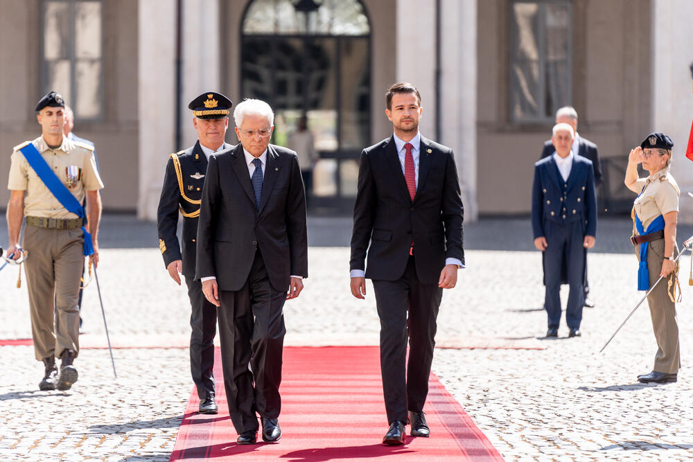 Milatović je uz najviše vojne i državne počasti dočekan u Rimu, gdje je razgovarao sa Matarelom, koji je u čast predsjednika Crne Gore priredio i svečani ručak u Palati Kvirinale.