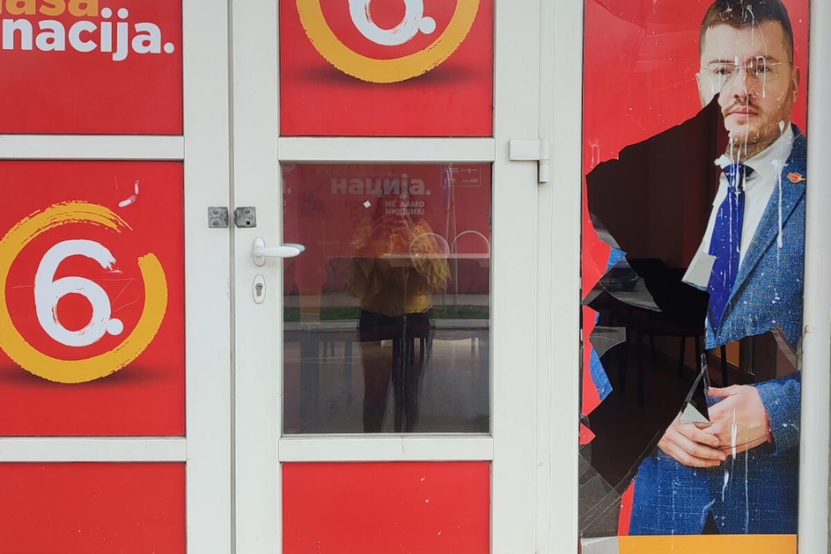 Nikšićki odbor Demokrata saopštio je da su se njihove prostorije našle na meti vandala i da je na kancelariji polomljeno staklo.