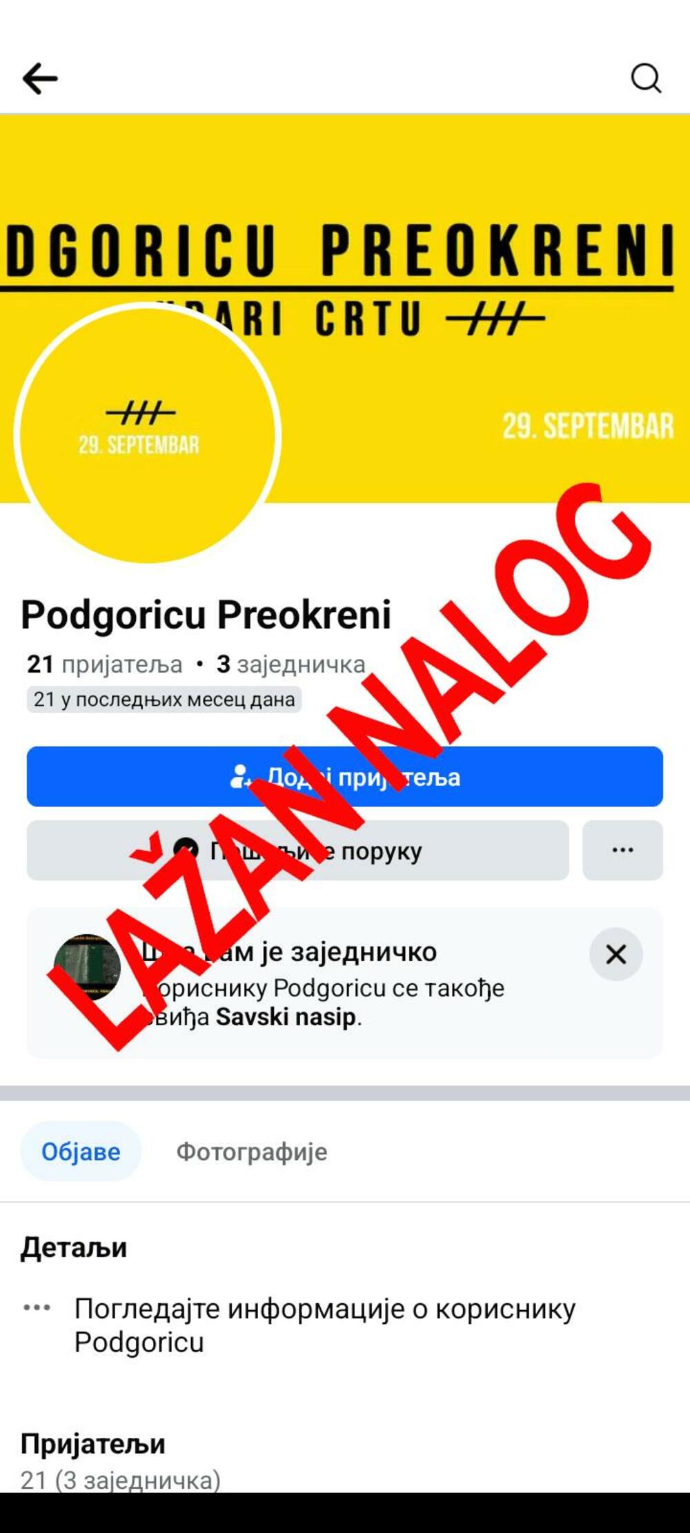 Pokret Preokret saopštio je da se danas pojavio lažni nalog koji je koristio dio njihovog vizuala.