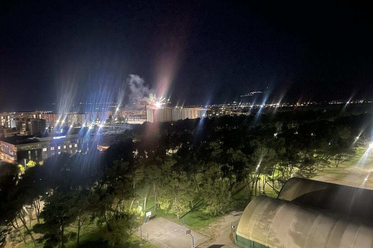 Nakon izbora Saše Mujovića za gradonačenika Podgorice, sa zgrade u kojoj su prostorije Pokreta Evropa sad, kod Tološke šume, ispaljen je vatromet.